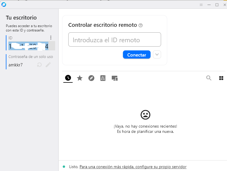 En el apartado superior de la izquierda verás un número de la ID que deberás proporcionar a técnico cuando contacte contigo, solo tienes que ver como se hace todo y de paso aprenderás en la medida de tus posibilidades parte del proceso.